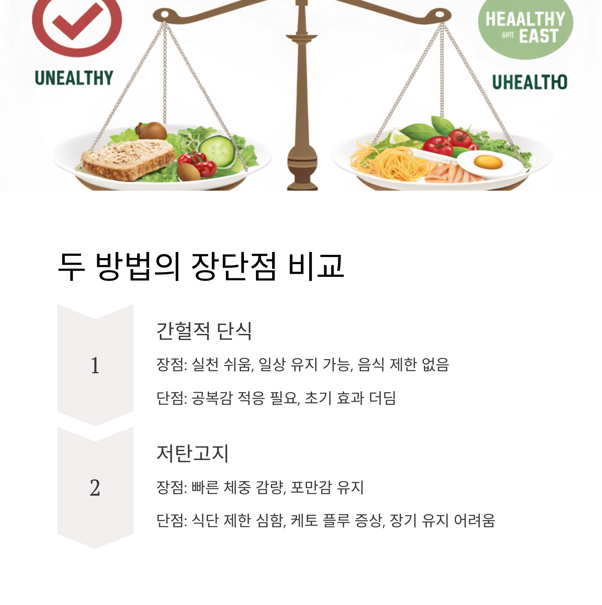| 간헐적 단식 원리 | 저탄고지 효과 | 다이어트 지속 가능성 |