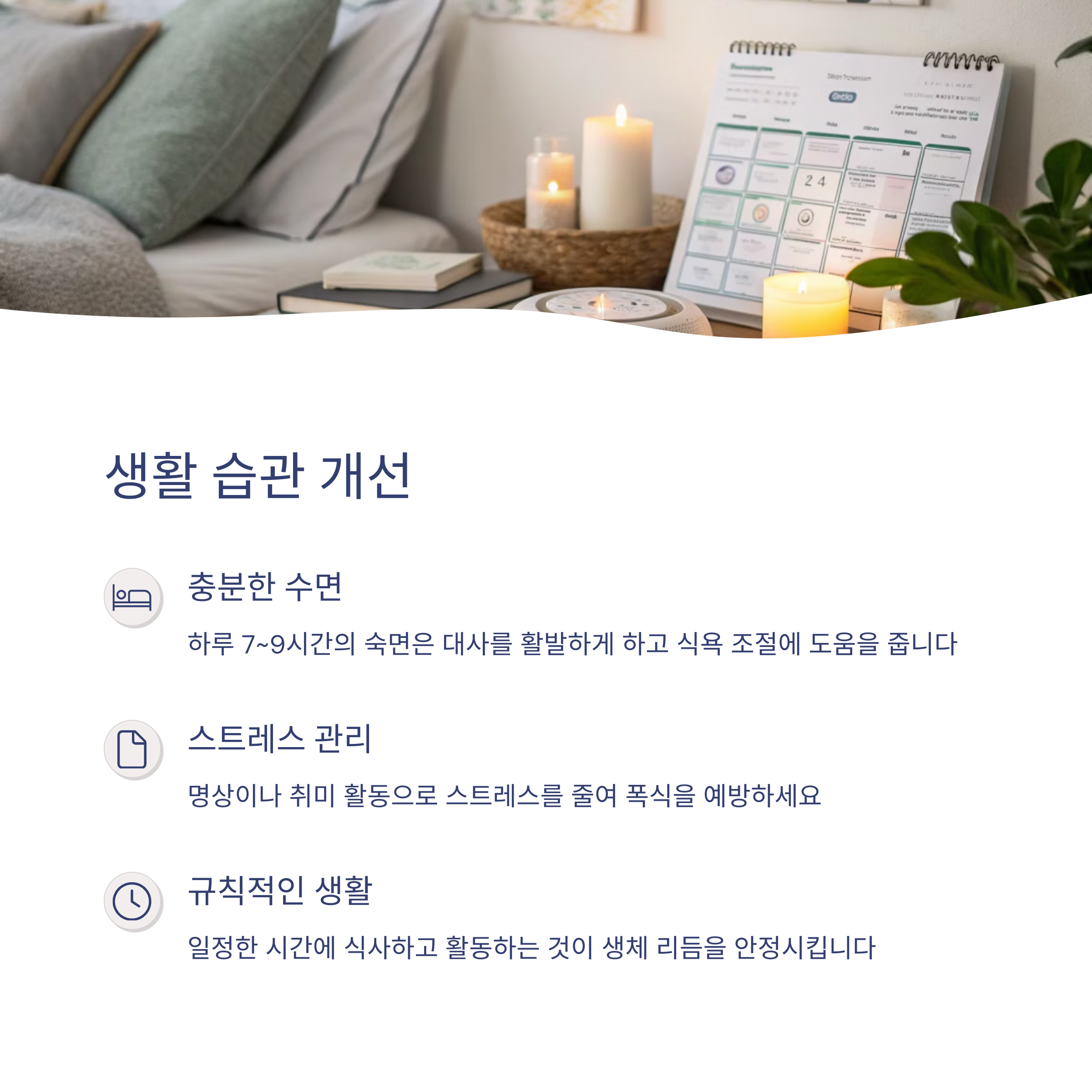 균형 잡힌 영양 섭취와 꾸준한 운동이 필수적입니다.