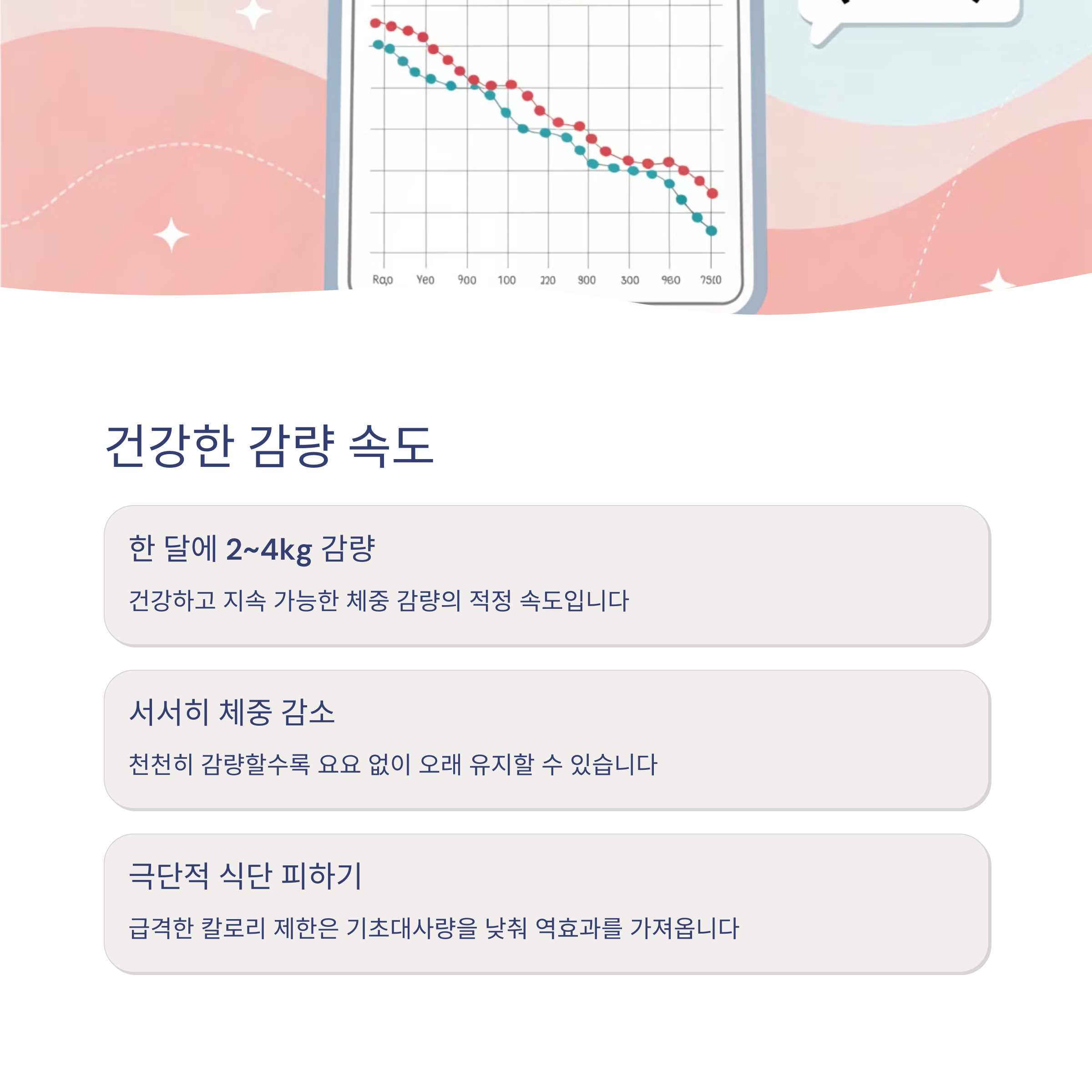 | 천천히 감량 | 한 달에 2~4kg 정도가 적절 |