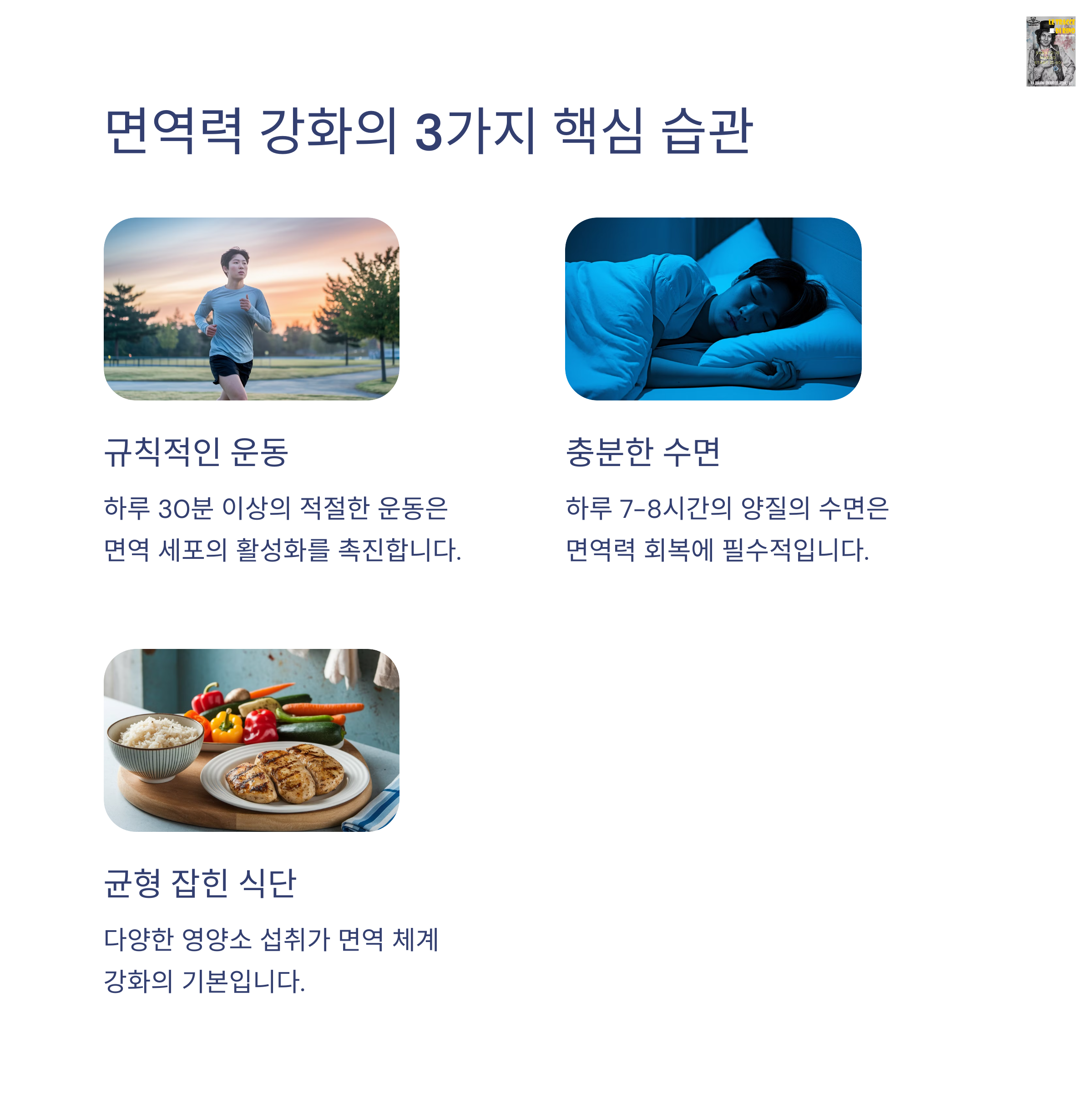 일상 속에서 작은 습관 변화만으로도 면역력을 크게 향상시킬 수 있습니다.