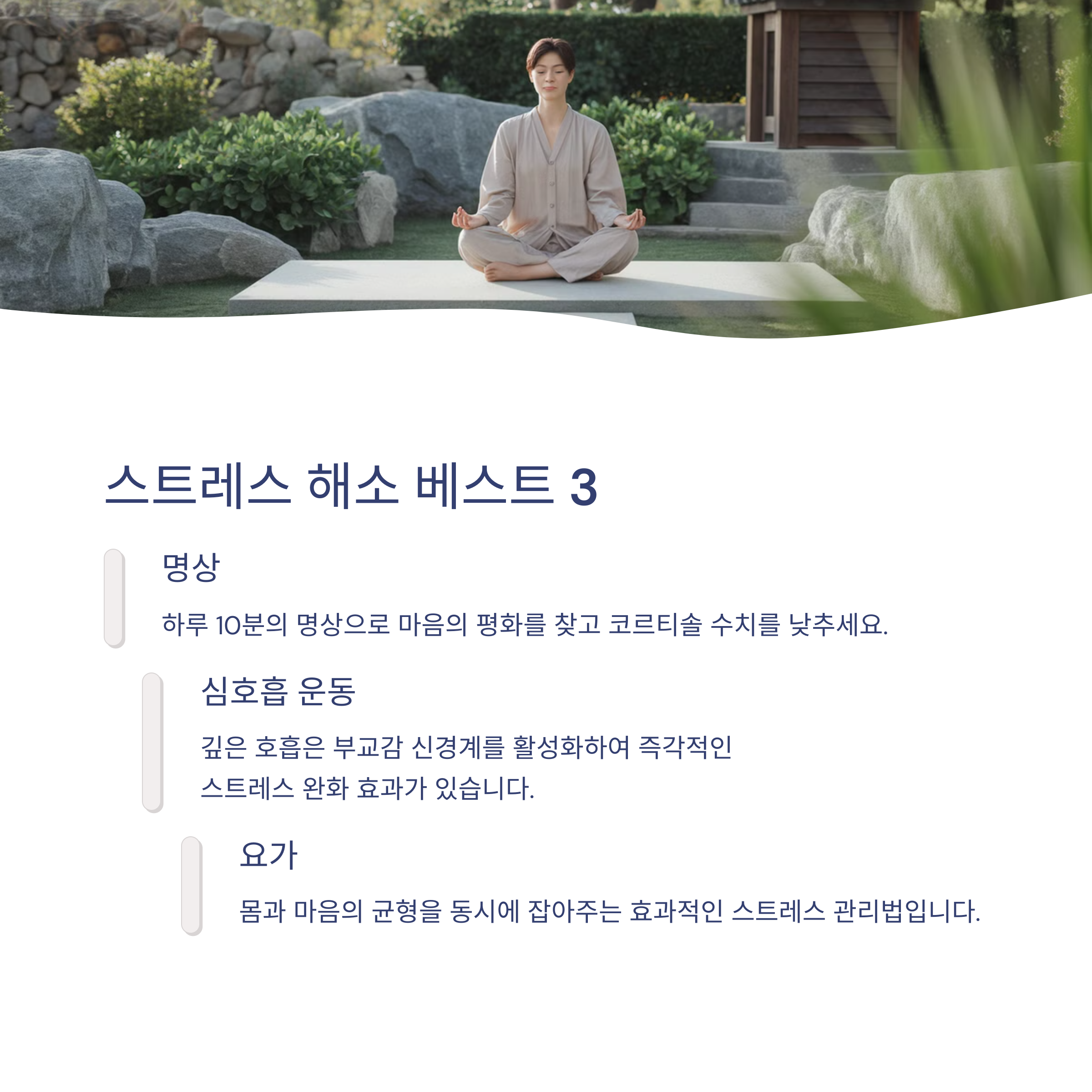 명상, 심호흡, 가벼운 운동이 효과적입니다.