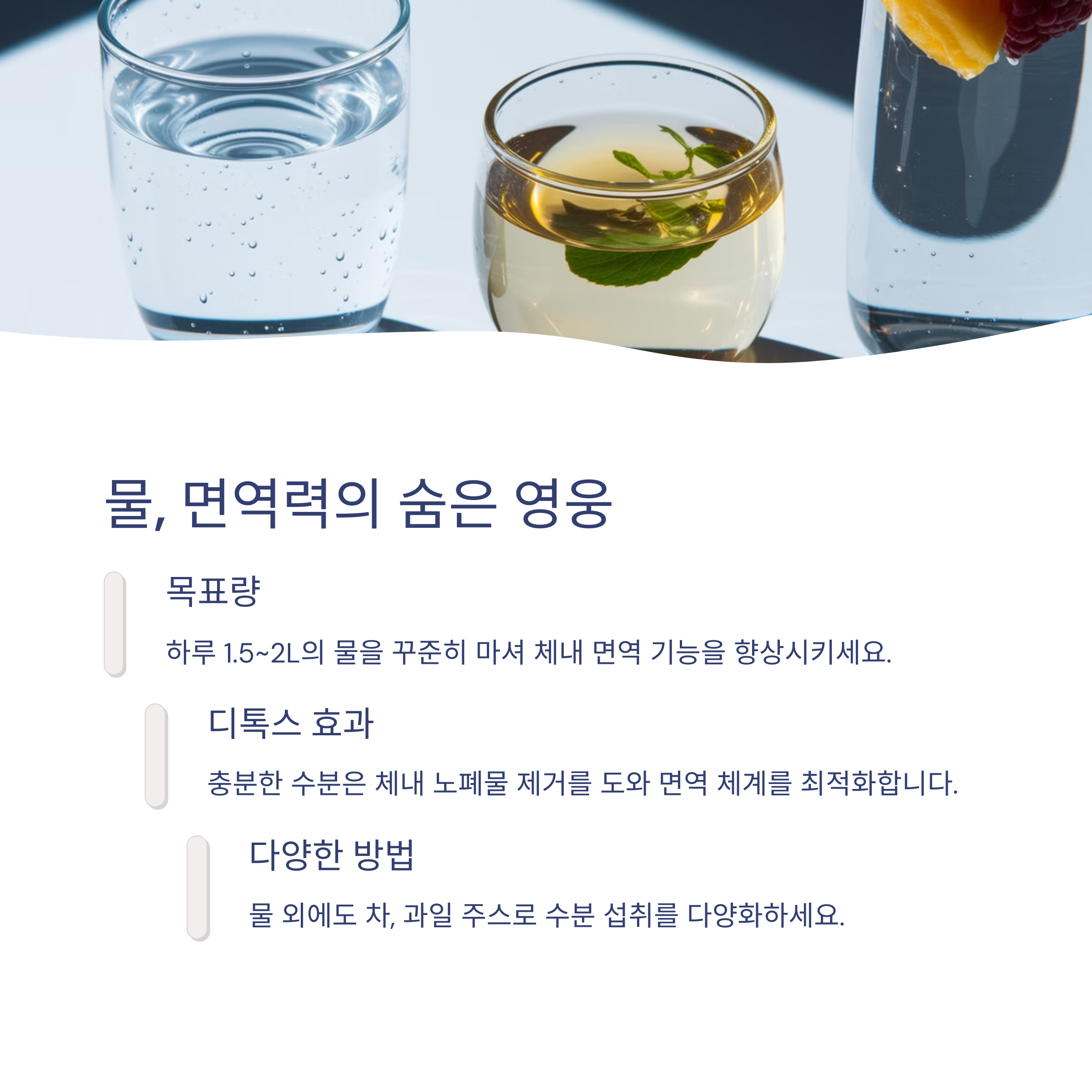 여기에 스트레스 관리와 충분한 수분 섭취까지 더하면 더욱 강한 면역 체계를 만들 수 있습니다.