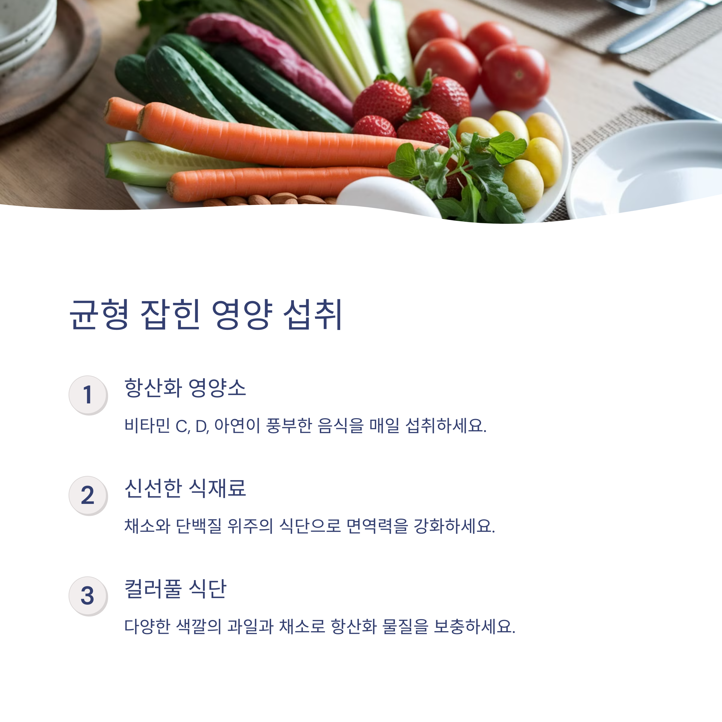 특히 비타민 C, D, 아연이 풍부한 음식을 자주 섭취해야 합니다.