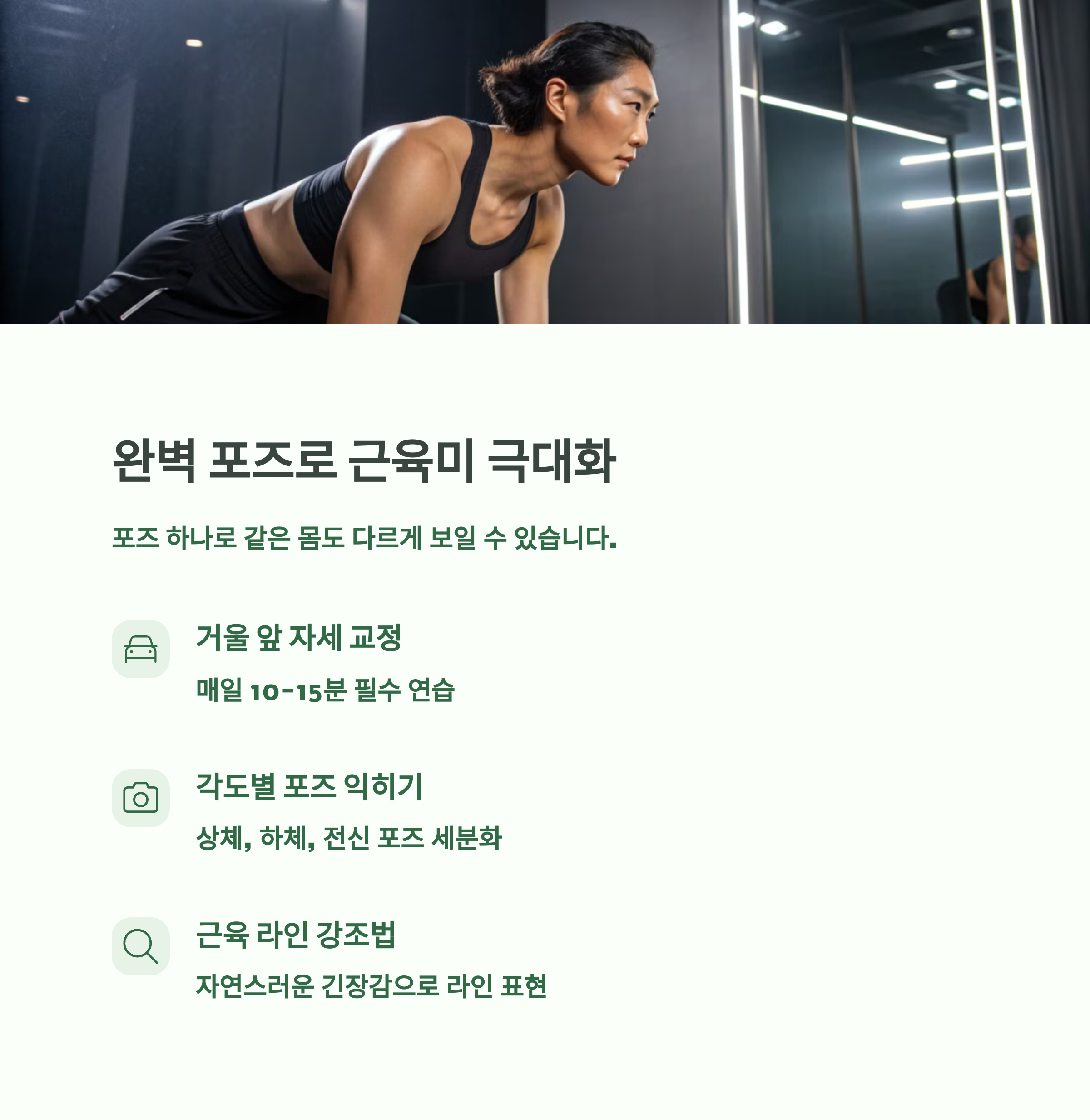 근육을 예쁘게 보여주는 건 조명도, 카메라도 아닌 포즈예요.