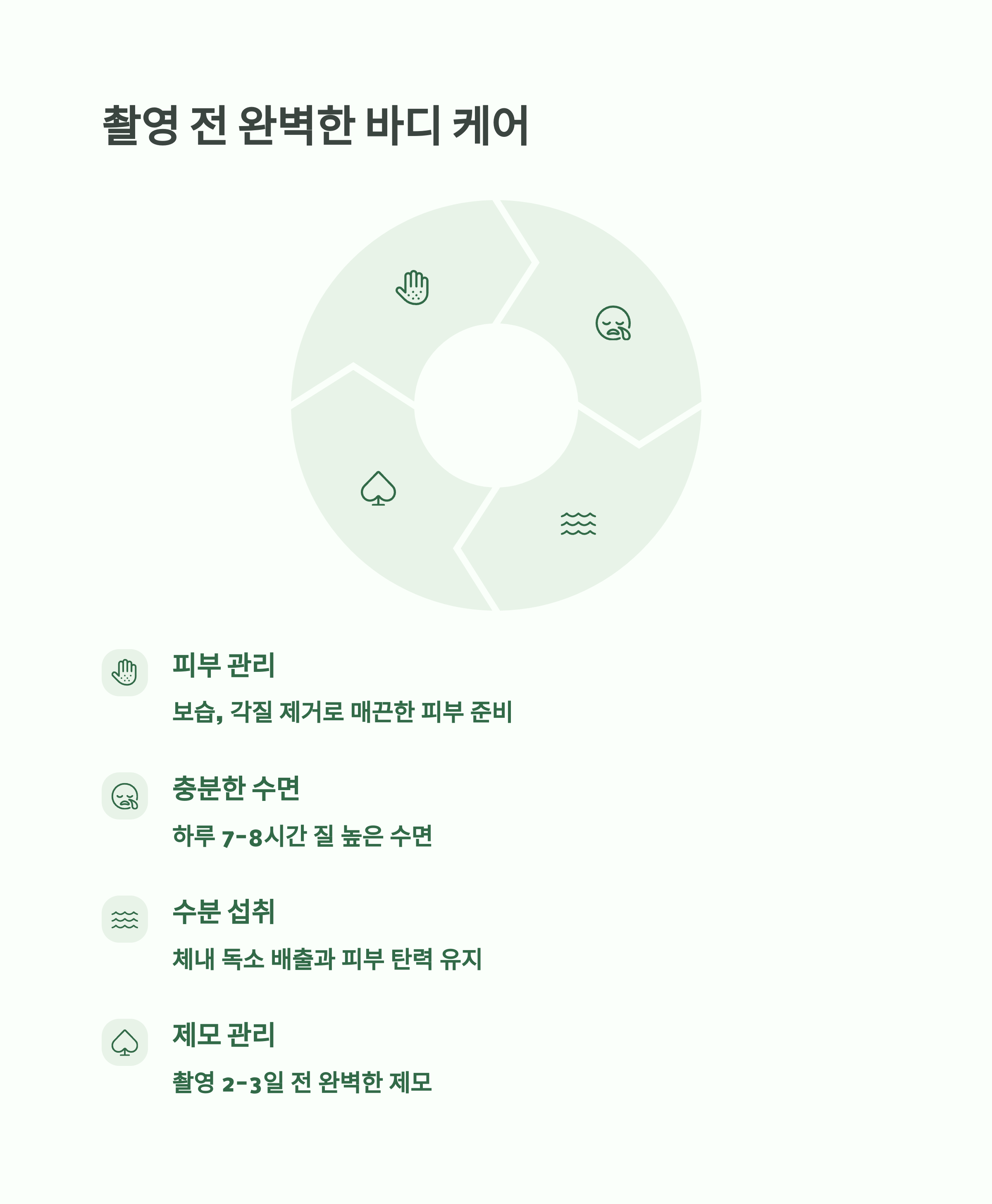 | 각질 제거 | 촬영 3일 전부터 부드럽게 |
