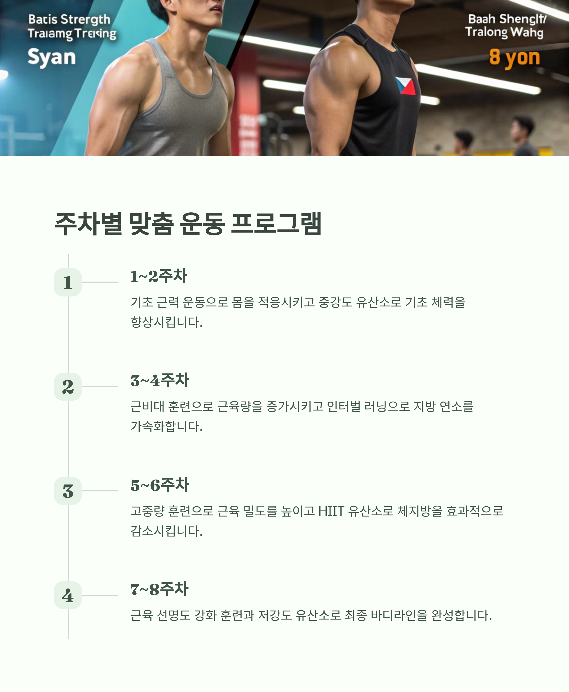 - 7~8주차: 근육 선명도 강화 + 가벼운 유산소