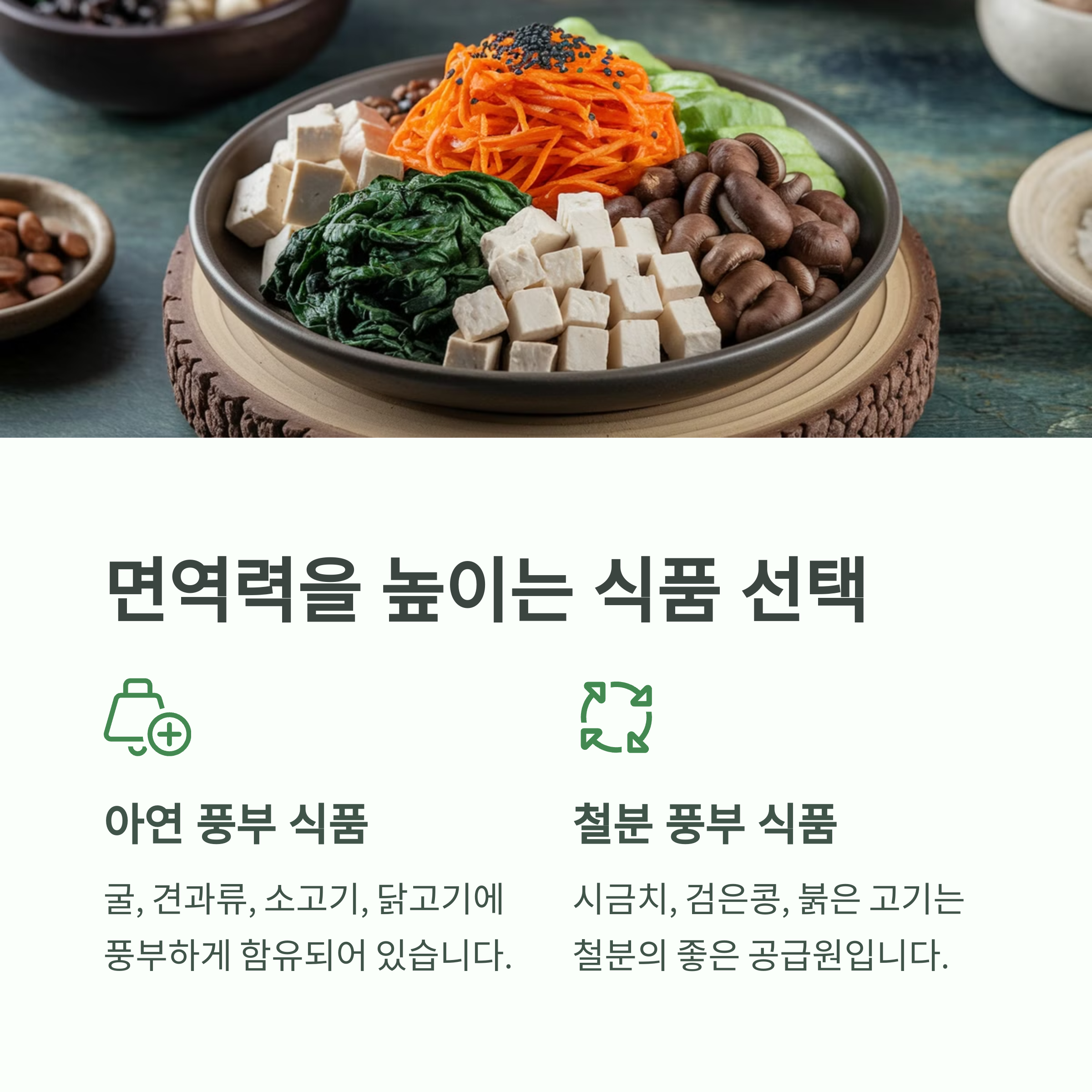 | 필수 영양소 역할 | 비타민 C, D, 아연, 철분 등은 면역력 증진에 필수적입니다. |