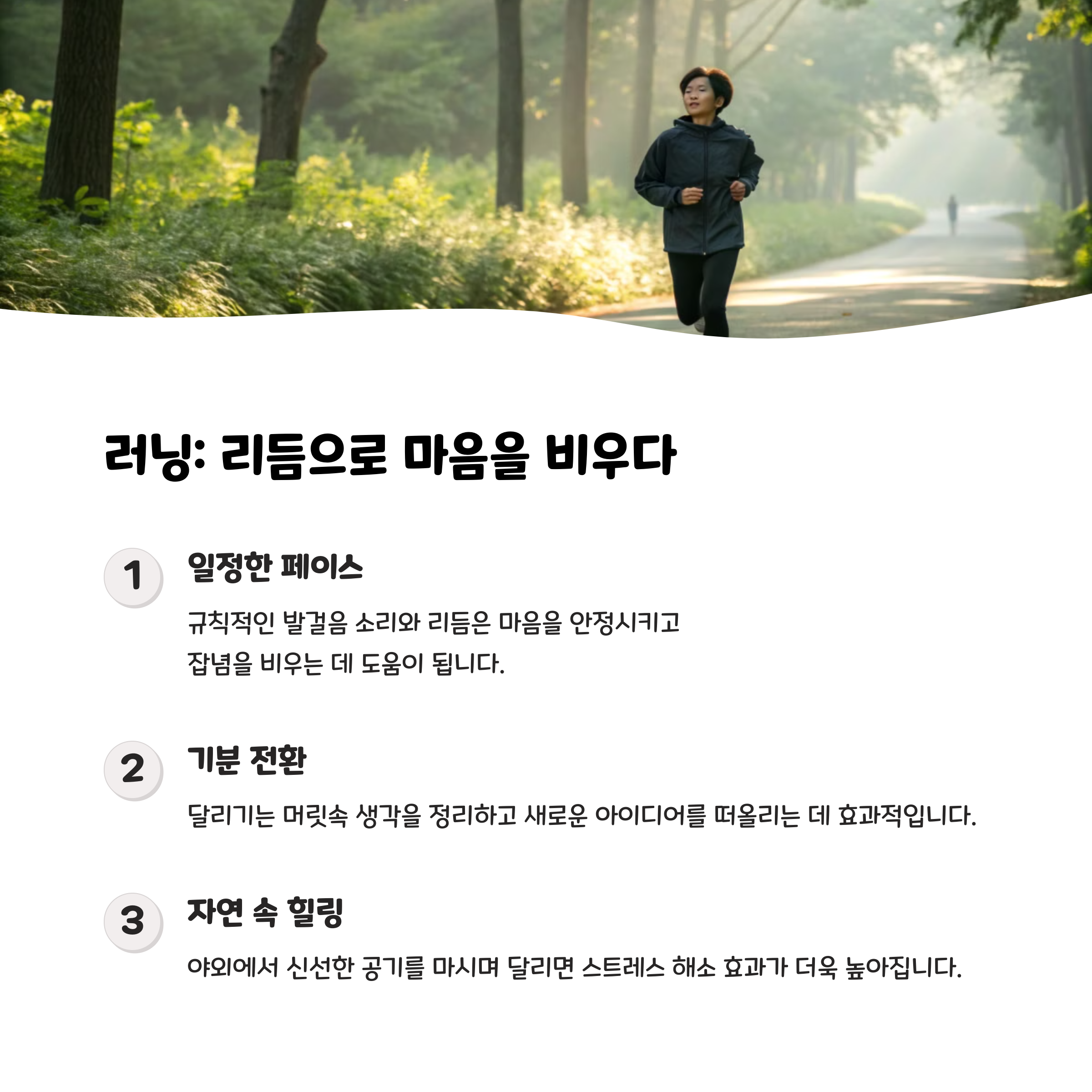 러닝은 스트레스 해소에 가장 효과적인 운동 중 하나입니다.