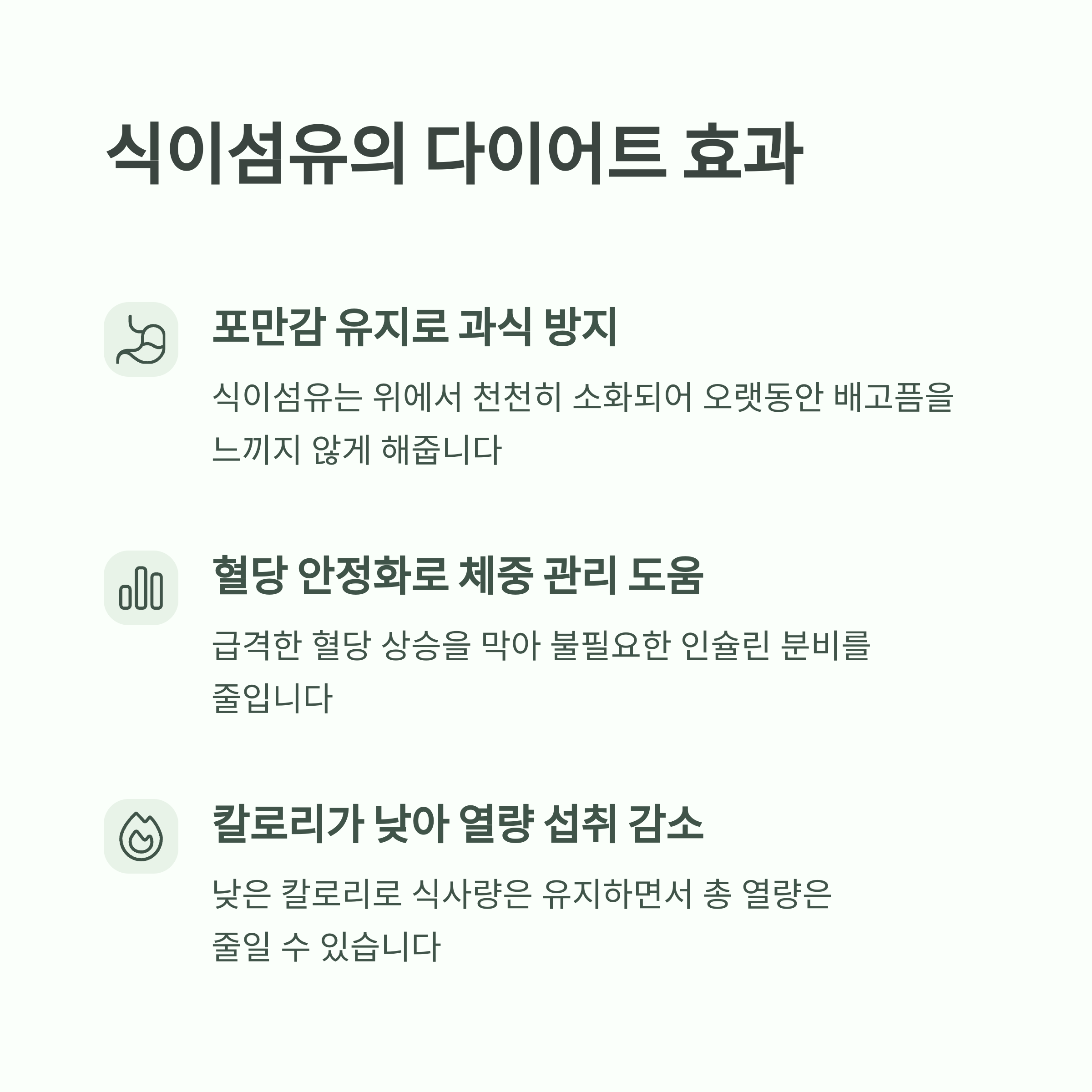 식이섬유는 포만감을 오래 유지시켜줘요.
