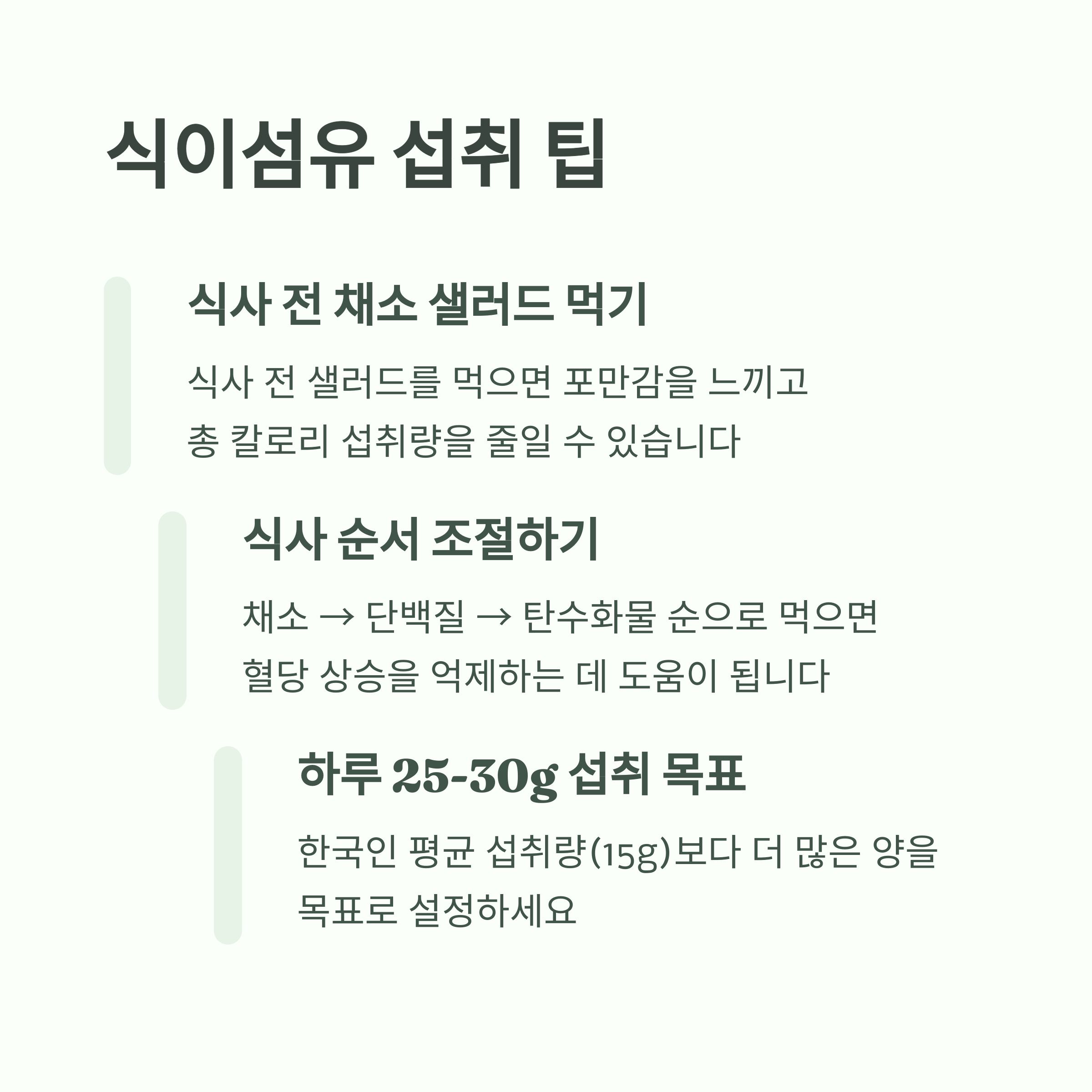 하지만 현실적으로 그 수치만큼 섭취하는 사람은 드물죠. 그래서 매 끼니마다 조금씩 식이섬유를 추가하는 습관이 중요해요.