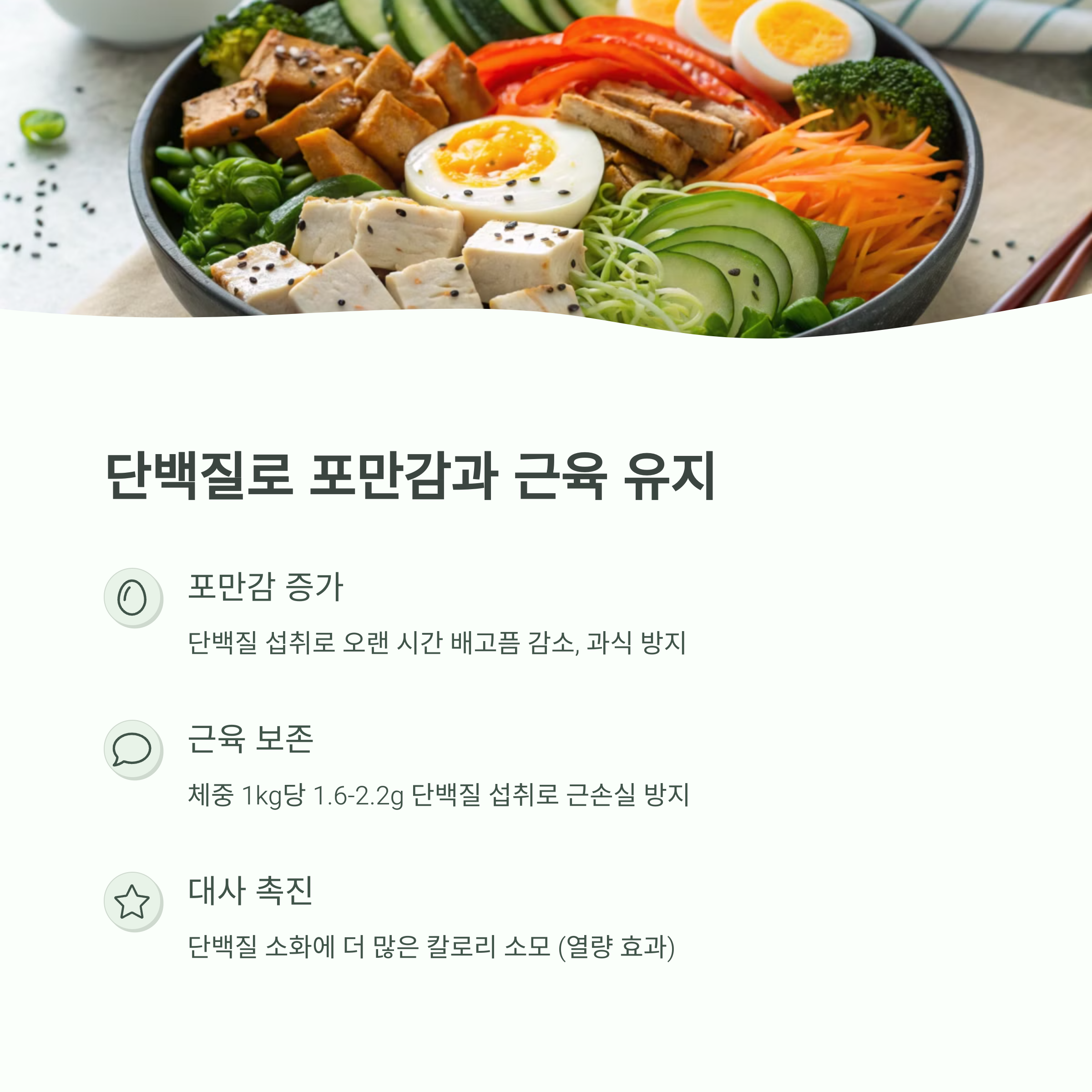 단백질은 다이어트의 핵심이에요. 닭가슴살, 두부, 계란, 그릭요거트를 활용해 하루 단백질 섭취량을 꾸준히 채워주세요.