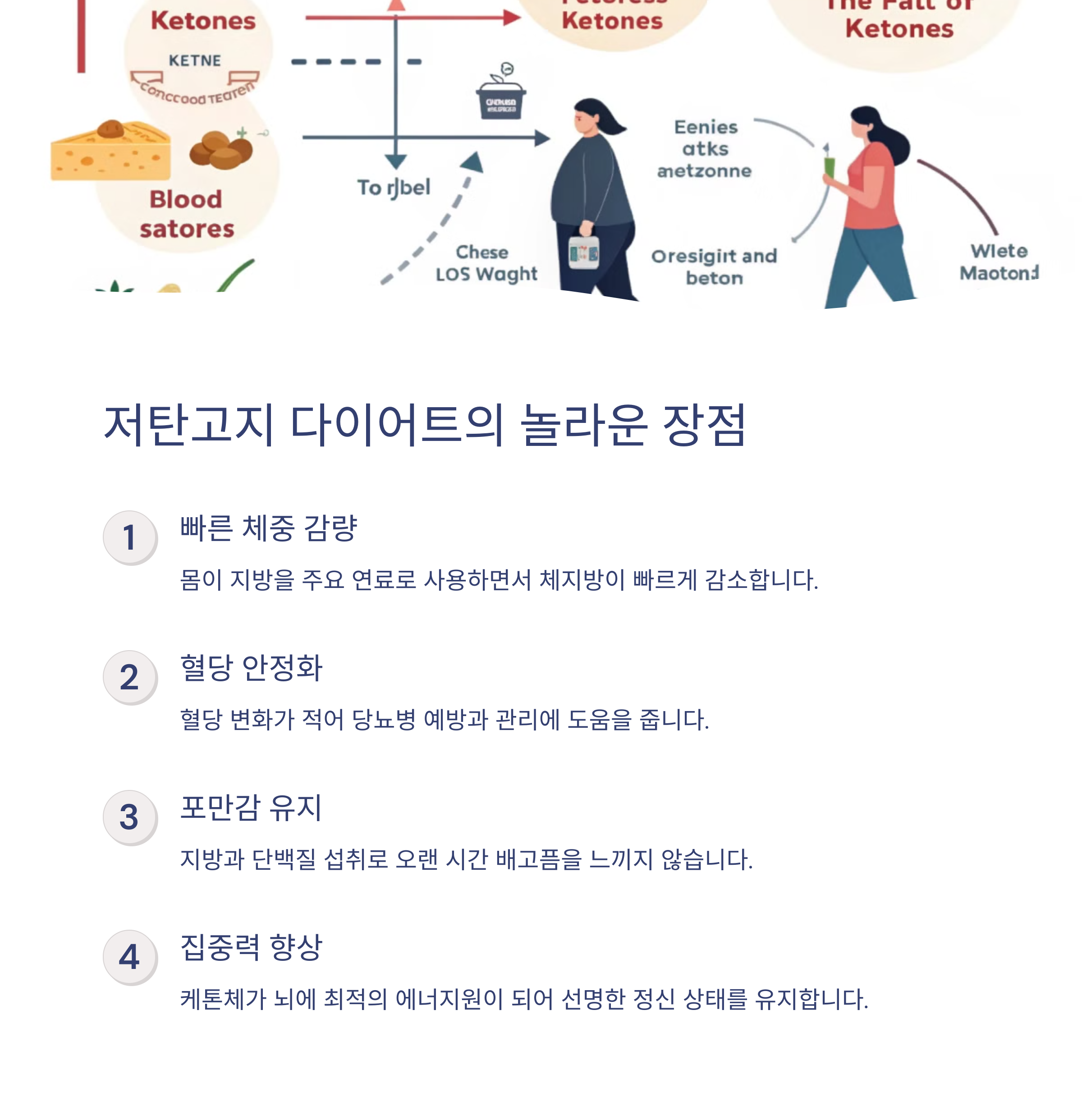 저탄고지 다이어트는 빠른 체중 감량과 혈당 조절에 효과적이지만, 부작용과 지속 가능성도 고려해야 합니다.