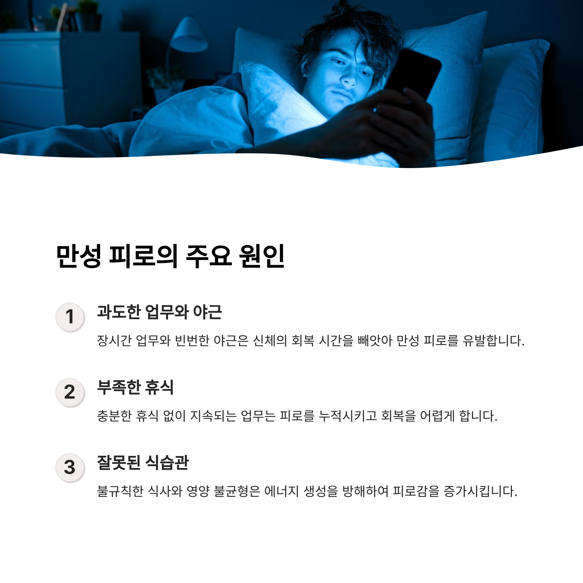 | 직장 내 과도한 업무 부담 | 숙면 부족이 피로를 가중 | 피로 해소를 위한 필수 요소 |