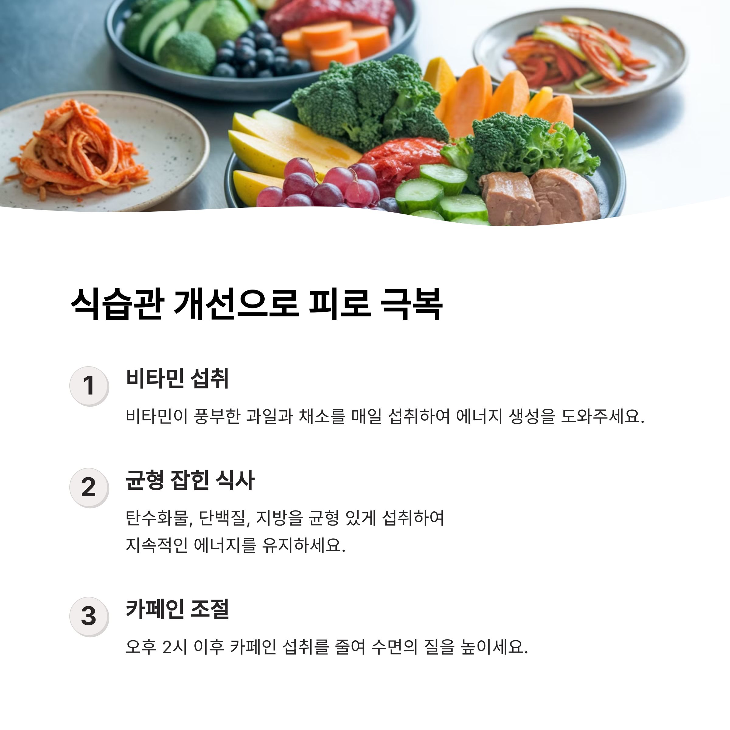 올바른 생활 습관을 유지하고, 충분한 수면과 균형 잡힌 식단을 실천하면 피로를 줄이고