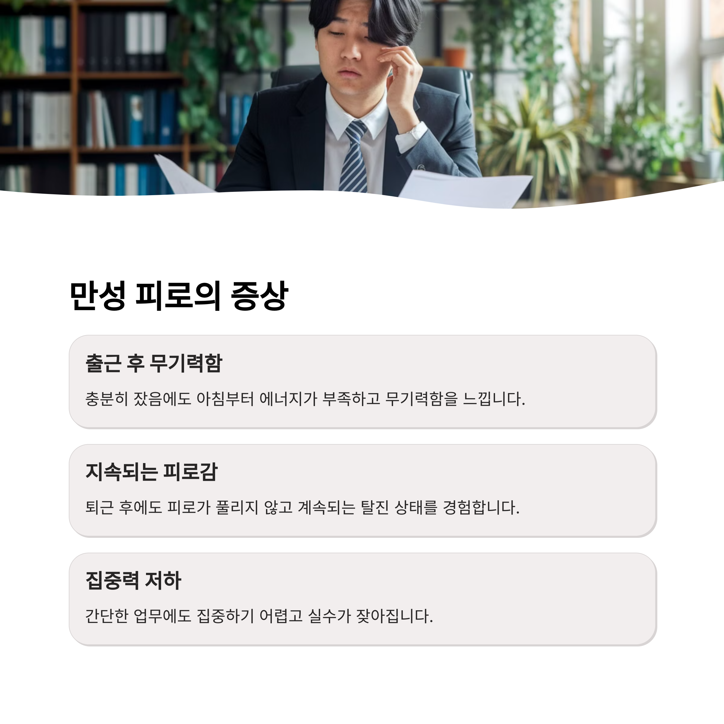 직장인들의 만성 피로는 단순한 피곤함이 아니라 신체가 보내는 중요한 신호입니다.