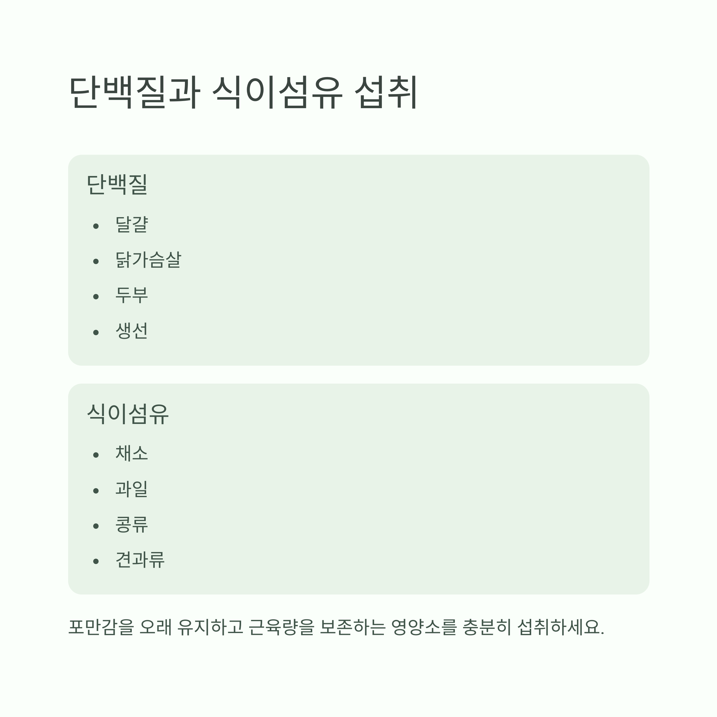 | 단백질 | 근육 유지, 포만감 증가, 식욕 억제 |