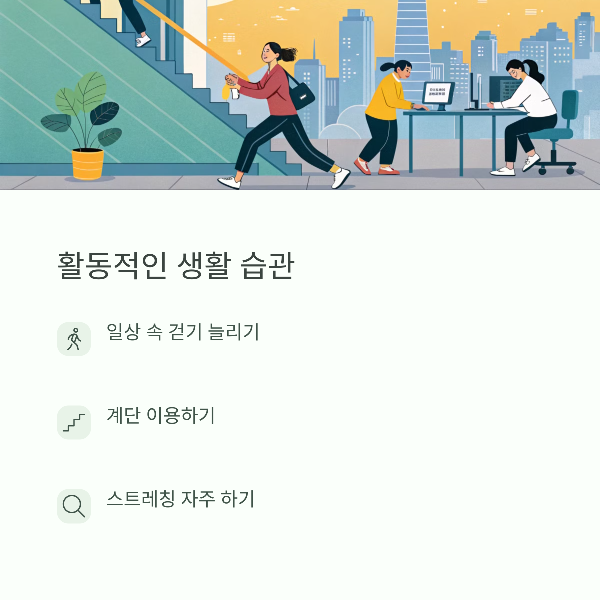 - 엘리베이터 대신 계단 이용