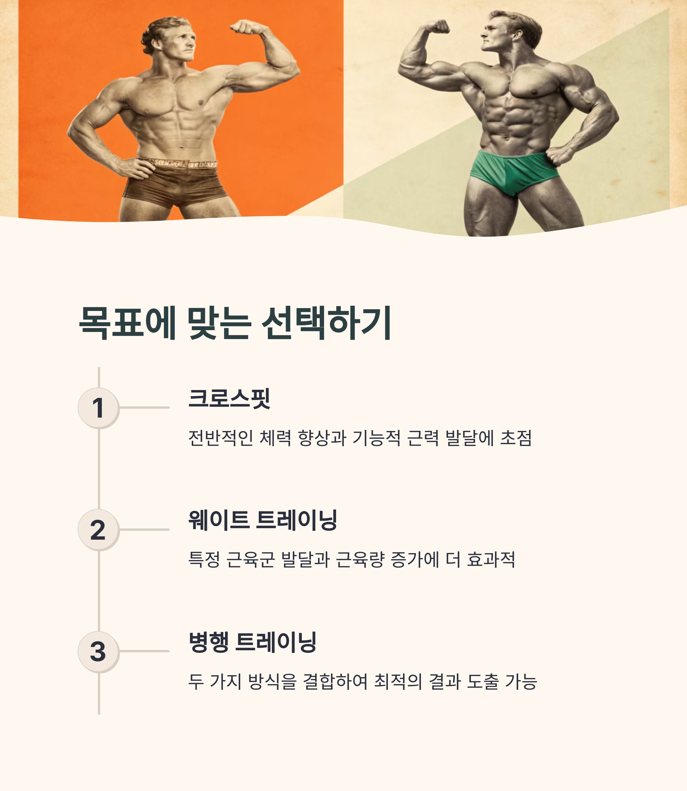 - 웨이트 트레이닝은 근육량 증가에 더 효과적, 크로스핏은 체력과 지구력 향상에 유리
