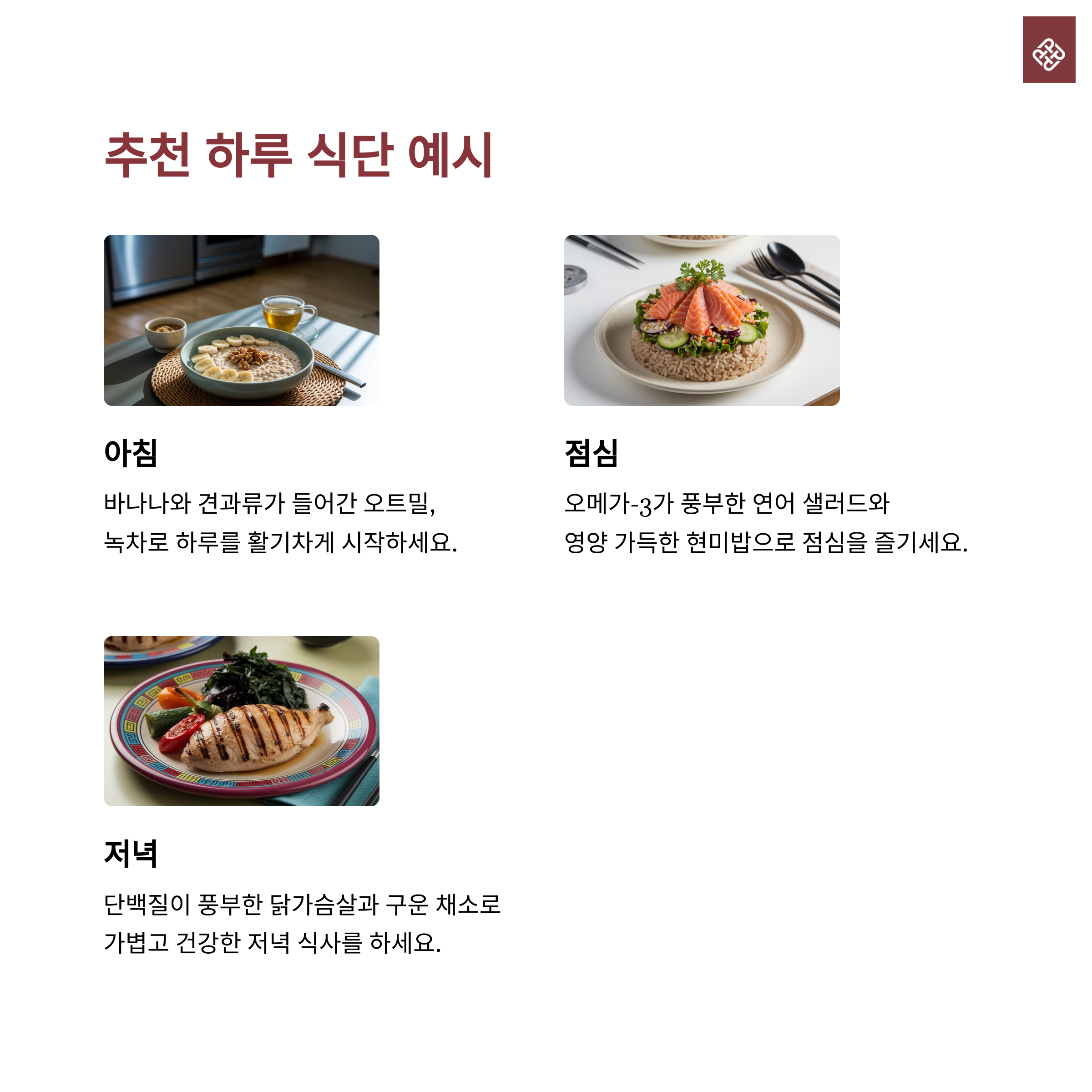이러한 식단은 몸에 필요한 에너지를 공급하며 피로 회복을 돕습니다.