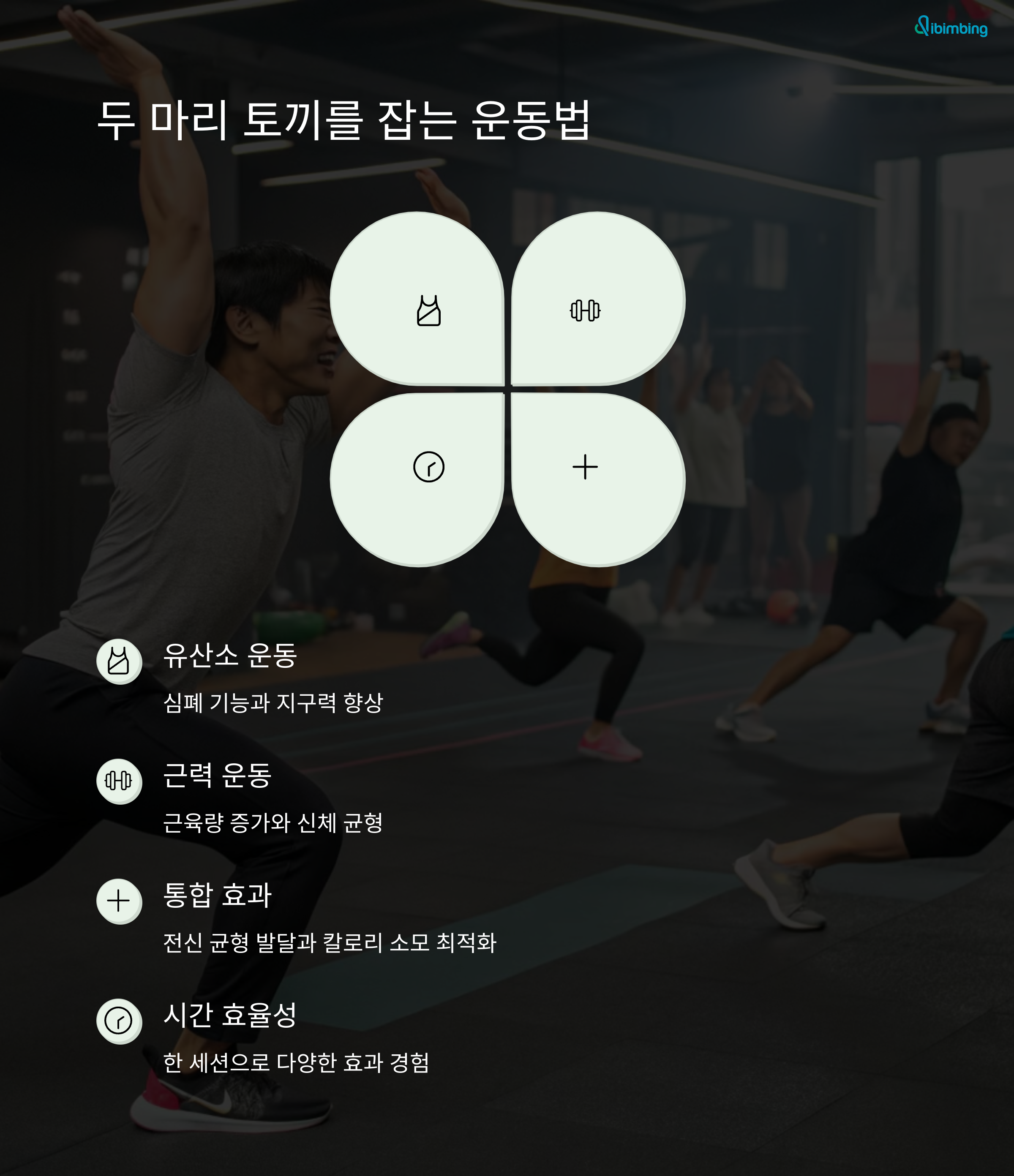하이브리드 운동은 유산소 + 근력 + 유연성을 한 번에 챙길 수 있는 트렌디한 루틴이에요.