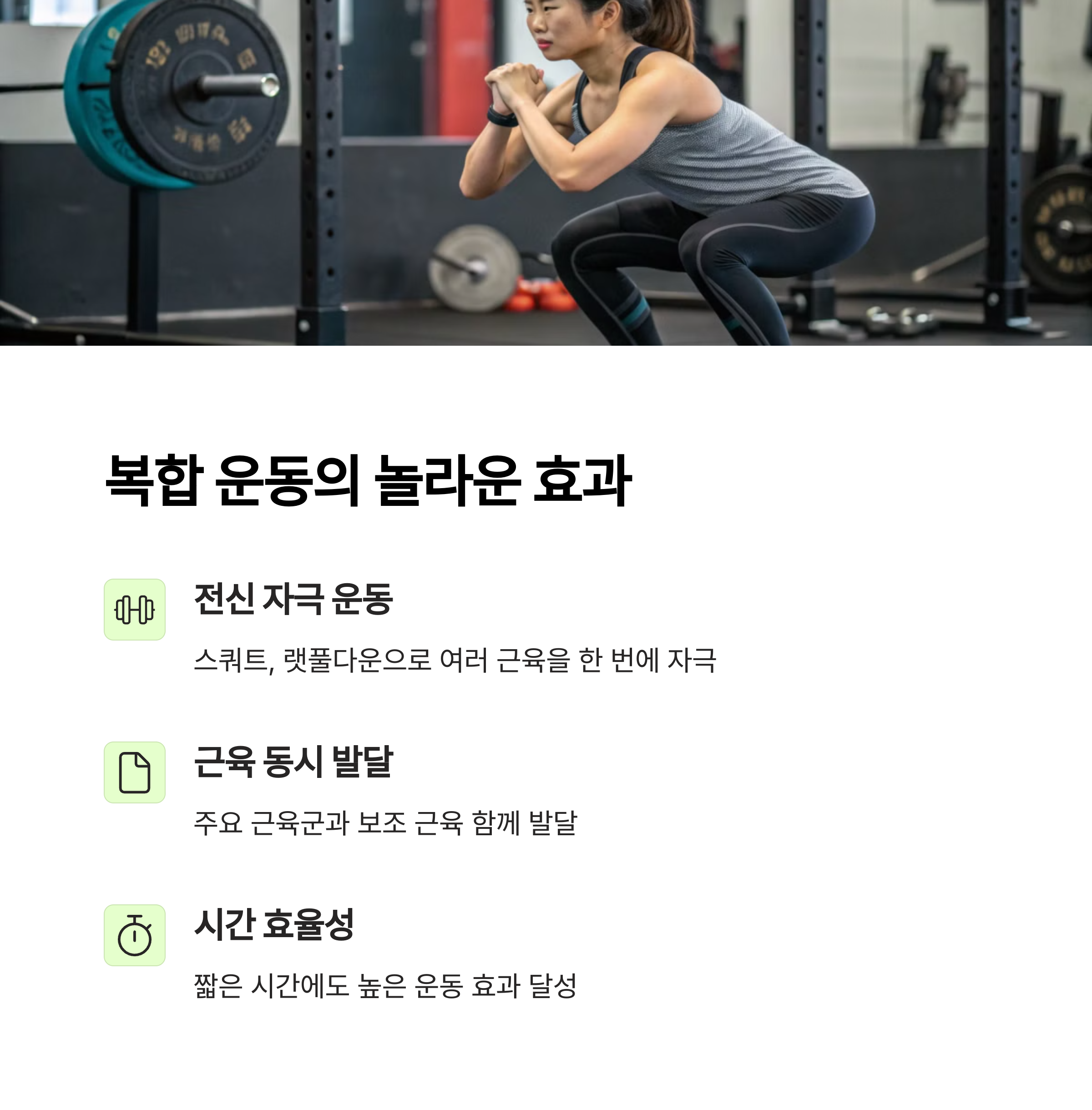 | 스쿼트 | 하체 강화, 전신 근육 자극 |