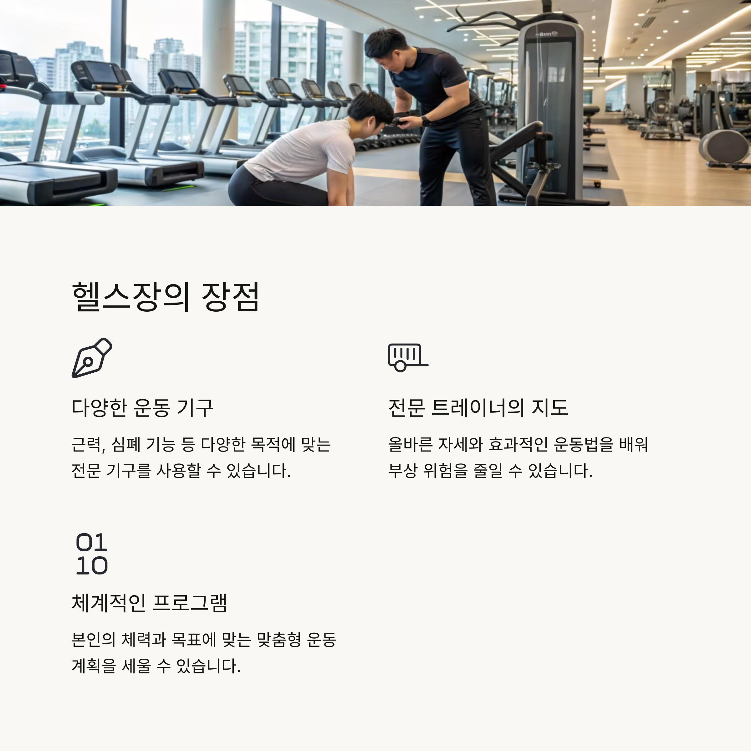| 헬스장 운동 | 다양한 기구 활용으로 근력 향상 효과 극대화 |