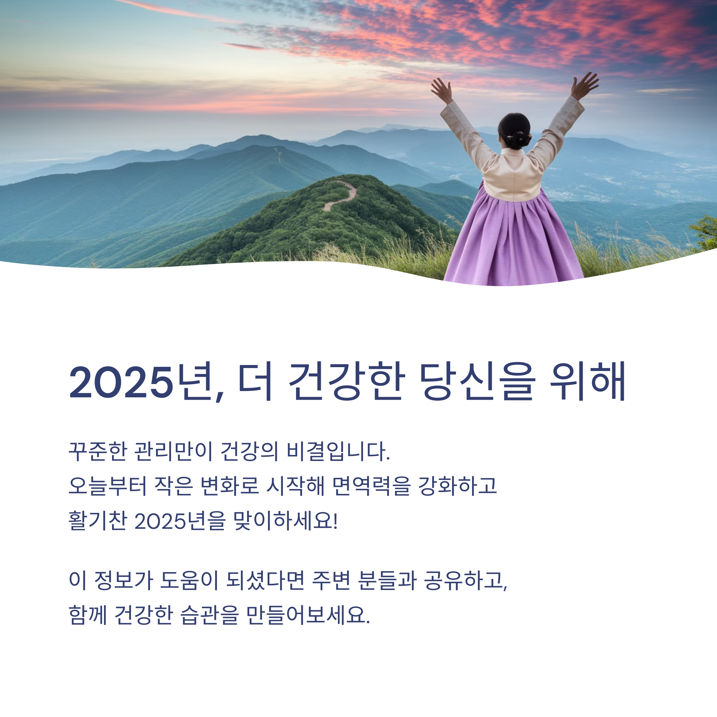 2025년을 맞아 건강한 생활 습관을 유지하고, 면역력을 자연스럽게 강화하는 방법을 실천해 보세요.