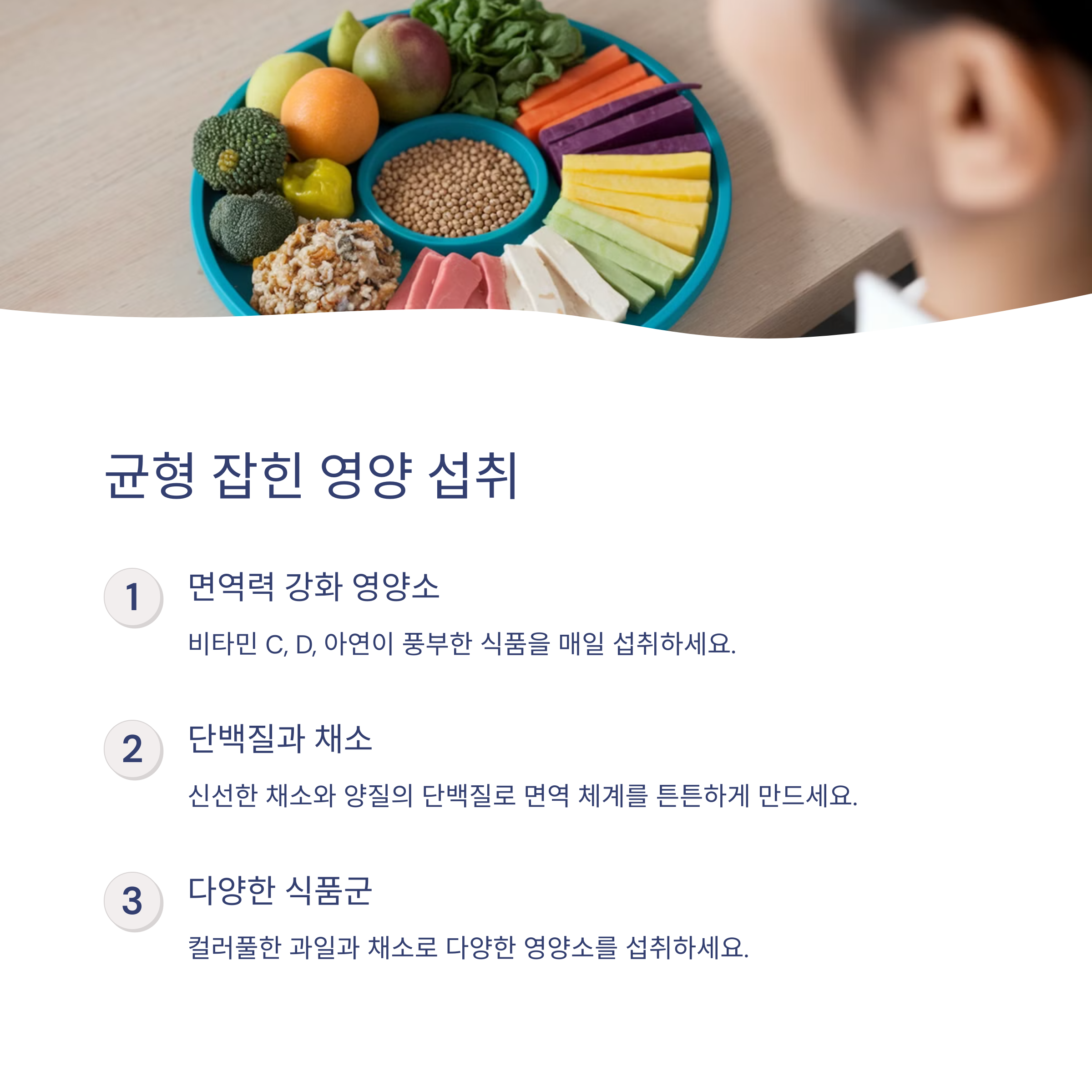 신선한 채소와 과일, 단백질이 풍부한 식단을 유지하면 면역력을 더욱 튼튼하게 만들 수 있습니다.